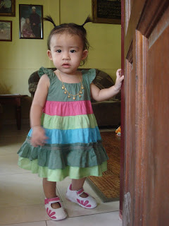Sejak dapat jalan sendiri, Aimi selalu jalan je dalam rumah. Kadang-kadang je nak mama dukung..hehe. Senang nya boleh jalan ni. Nak gi mana-mana senang sangat. Aimi boleh gi ke rak buku dan jatuh2kan buku-buku mama, boleh ke dapur kemaskan bekas-bekas yang mama susun kat rak dapur, boleh tolak troli pasar mama sendiri, boleh panjat tangga, boleh kejar kucing dan macam-macam lagi la. Pastu kalau mama asyik duk tengok drama je kat tv, Aimi boleh jalan cari remote dan bagi kat mama suruh mama tukar kartun Aimi. Tapi kan, letih la pulak jalan ni. Baru Aimi tahu. Sebab selalu kepenatan, Aimi selalu tido awal sekarang. Pukul 7, 7 lebih, 8 atau 8 lebih.